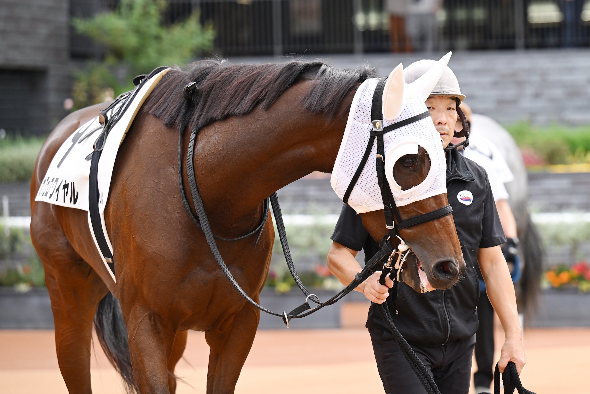 ファンタストクラブ: 火曜日、金曜日ともに雨の影響で坂路が使えなかったため、角馬場でウォーミングアップ後に屋内ダートコースを併走で3周、ダクと軽いキャンターで乗りました。 他の日は、角馬場でウォーミングアップ後に屋内ダートコースをキャンターで2〜3周乗っています。 先週までに引き続き、馬具を用いて頭の高いフォームの矯正に取り組んでおり、少しずつ上手な首の使い方を覚えてきています。脚長でスラッと見せる馬体ですが、付くべき部分に筋肉が付いてくれば、見栄えも走りも良くなってくると思います。馬体重467kg