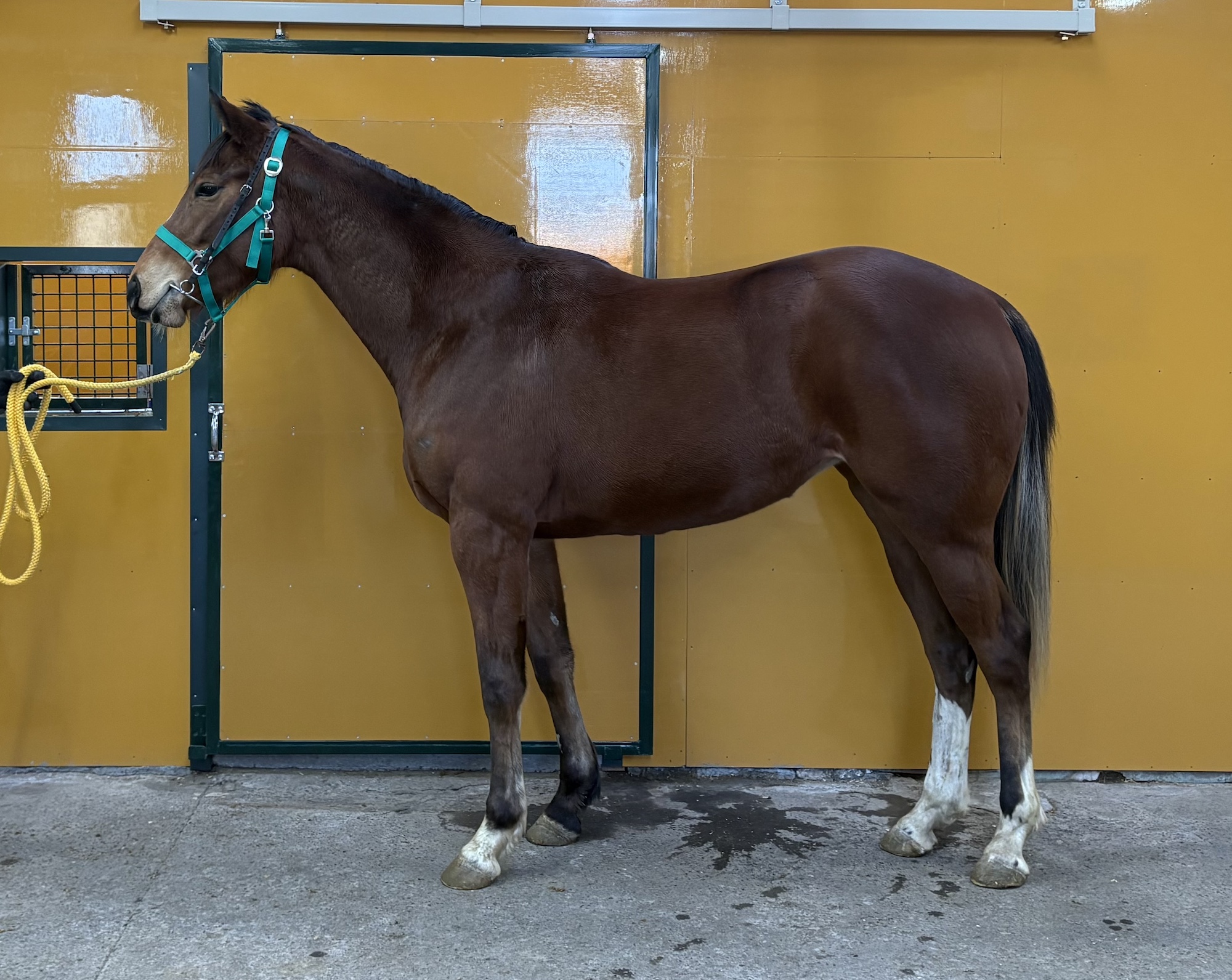 浜菊ファーム緑町育成場(仮):先週と同様の屋内ダートコースをウォーキングからダクで2000m、その後キャンターで2800mの調教を行っています。 他馬に影響される事も少なく黙々とトレーニングに向き合っている印象です。 人との関わりも好むタイプで、馬房内ではすぐに寄ってきてくれる愛らしい一面も見せてくれています。 また、飼い葉食いの心配の必要がないくらい食欲旺盛です。 この調子で調教を進めていきます。