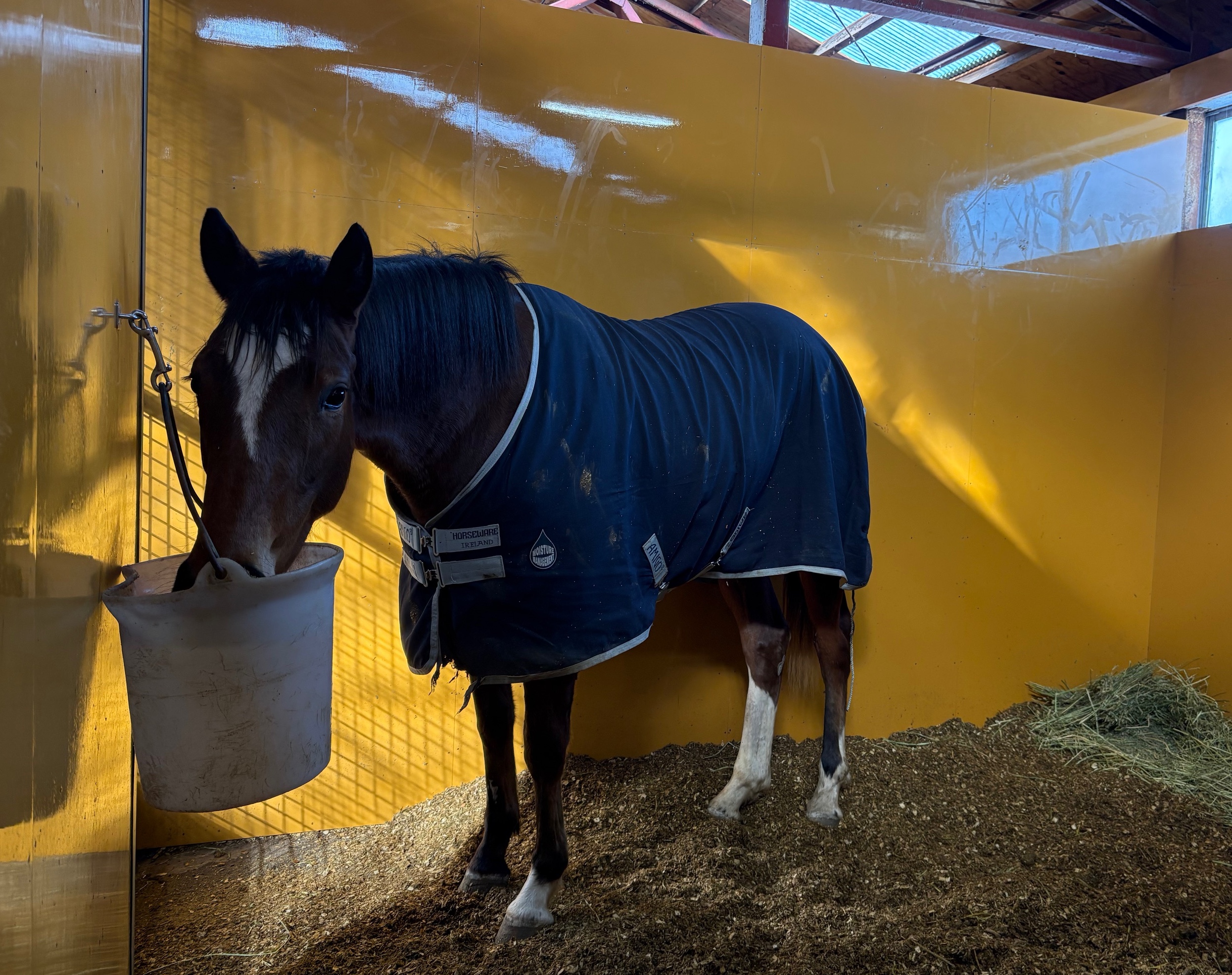 浜菊ファーム緑町育成場(仮):屋内ダートコースをウォーキングからダクで2000m、その後キャンターで2800m程度のメニューを行っています。 先週末から今週頭にかけて気温がグッと下がりましたが、体調を崩すことなく日々の調教が出来ています。 小柄な馬ですが、今のところ非力な感じはありません。 調教中に煩い面を覗かせる時もありますが、基本的にはリラックスして取り組めています。 前回の計測時より馬体重は減っていますが、飼い葉はしっかり完食しています。 疲れが出やすい時期ですので、体調管理に気をつけながら基礎固めに努めてまいります。 馬体重431kg