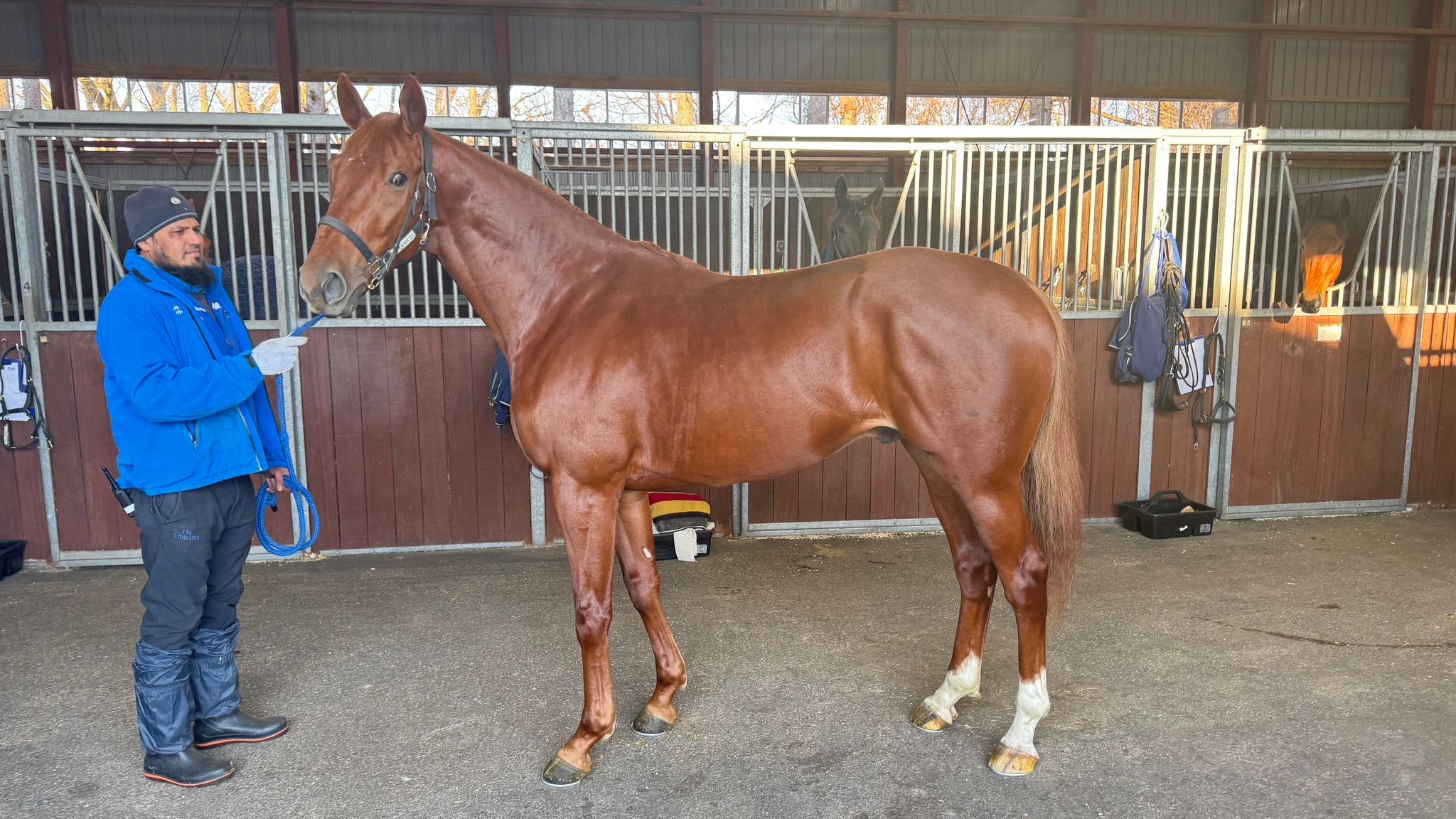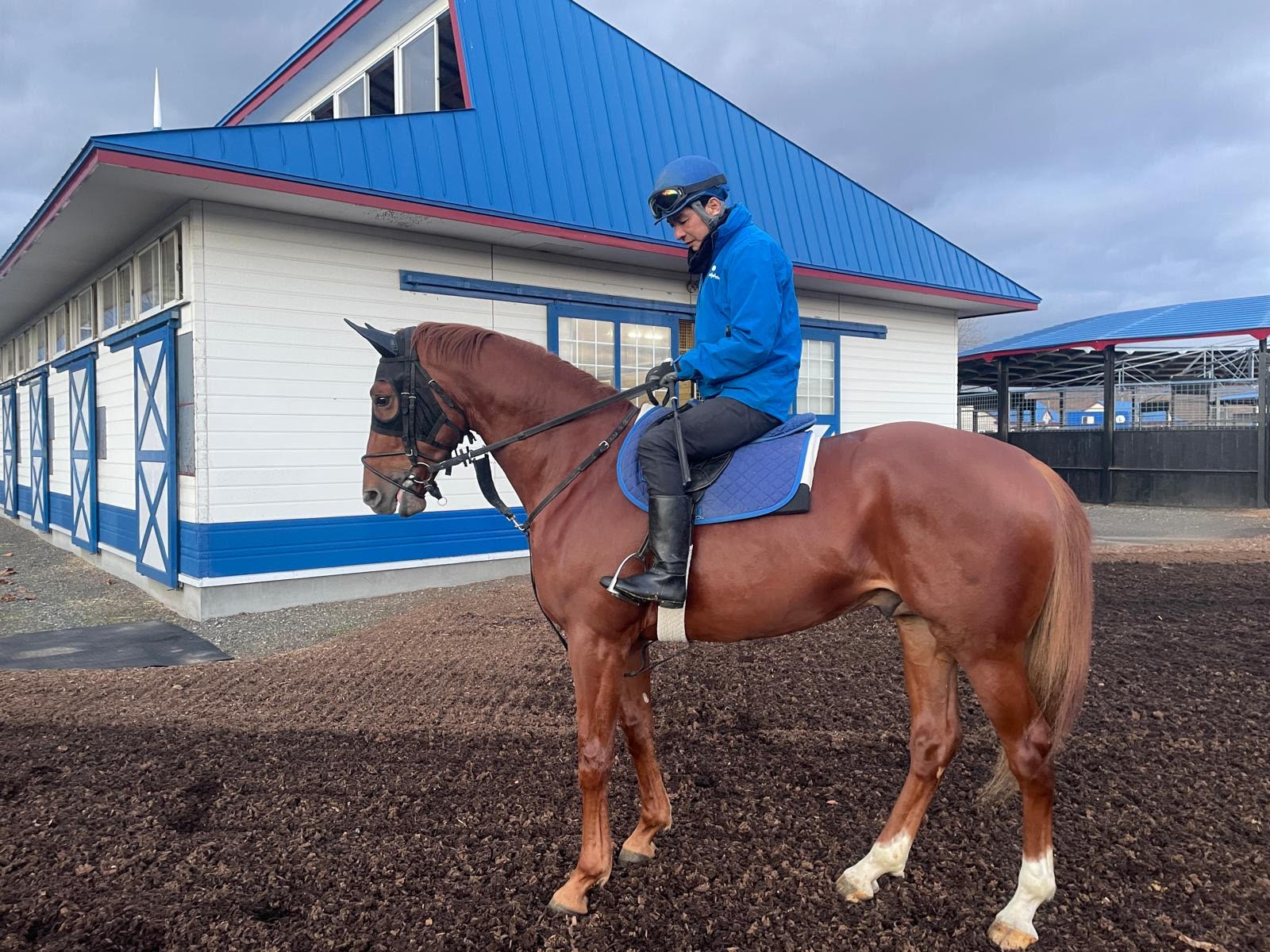キャッスルパーク:今週も屋内馬場でダクからハッキングでのウォーミングアップ後に坂路1本20~18/F程度の調教を行なっており、本日金曜に坂路15-15の調教を行いました。 パワーのある馬なので、坂路での攻め馬でもしっかり動けるようになってきました。 こちらに来る前にじっくり乗り込んできたこともあり、坂路に入れてからのペースアップが順調に進んでおります。 このまま順調であれば、12月中には本州へ移動させられると考えております。