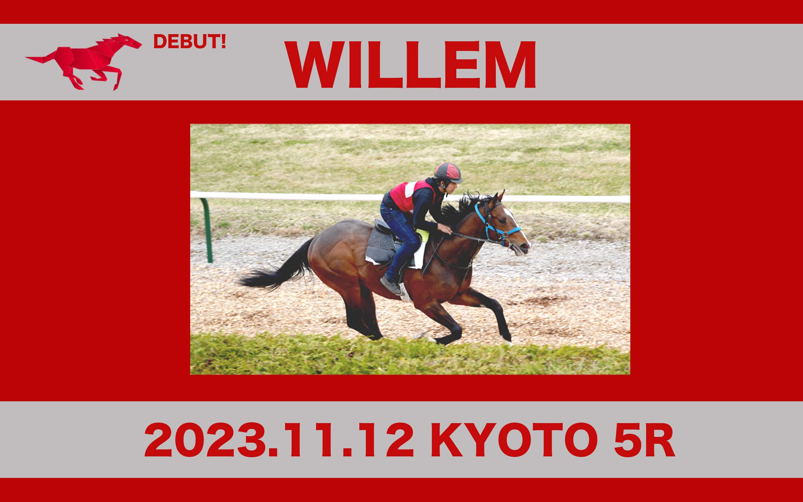 ヴィレムが11月12日 第3回京都競馬4日5レース 新馬戦 (芝 2000m)に、C.ルメール騎手の騎乗でデビューを迎えます。